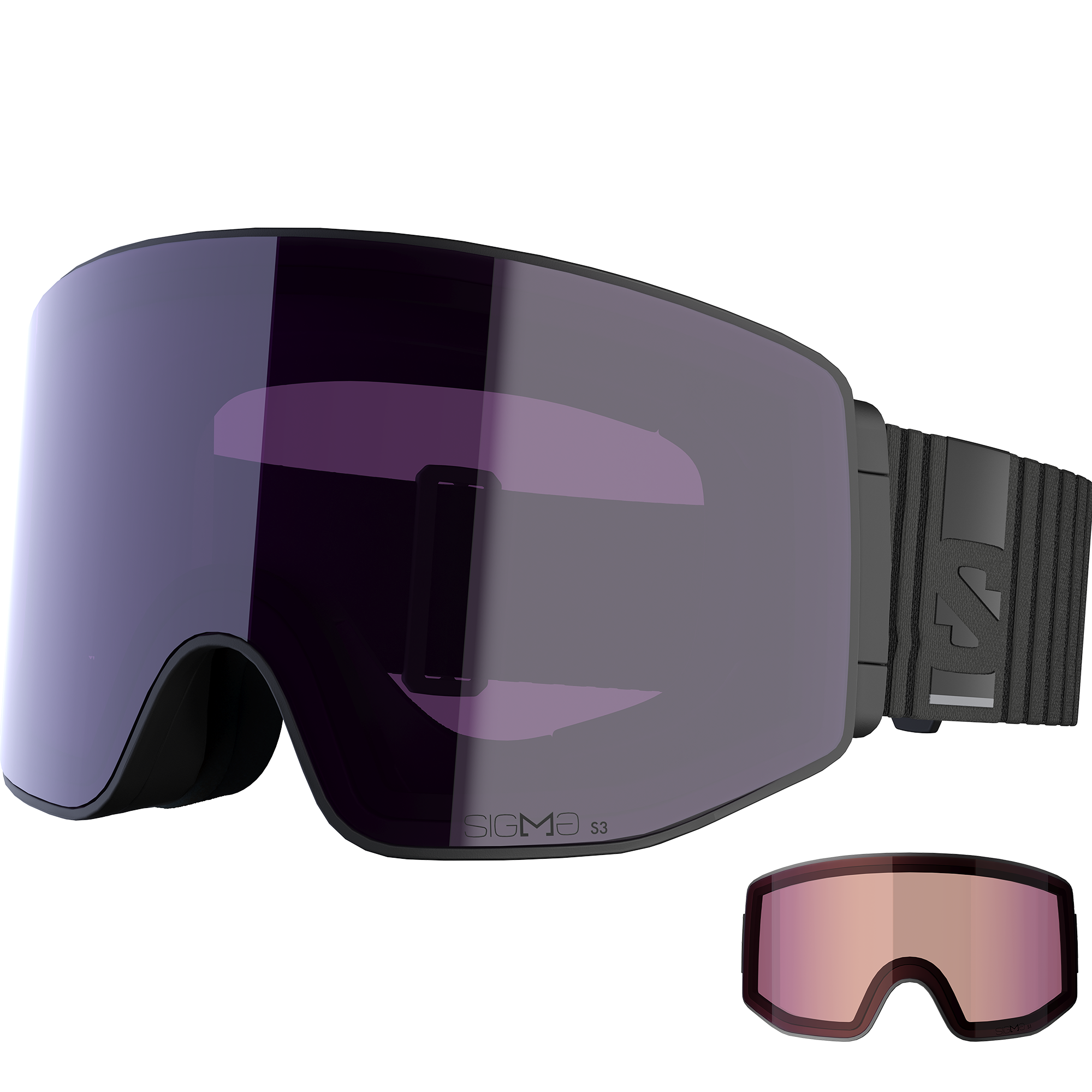 The Salomon Sentry Prime Sigma goggles blend modern street style with state-of-the-art goggle tech for unbeatable on-snow performance. Featuring cylindrical SIGMA™ lenses, these goggles offer amplified contrast and easy lens swaps to optimize vision for any weather. Secure magnetic changing and multi-layer lens coatings ensure optimal clarity and fast adaptation.
