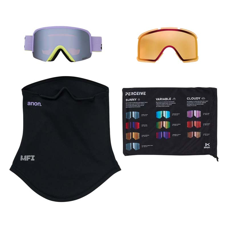 Integral Clarity anti-fog technology exceeds standard treatments, so your vision remains unobstructed, even during high-output or variable snow conditions. Full perimeter vent channels maximize airflow, quickly moving out hot air and moisture for optimal visibility. Included in the package are a bonus Perceive lens and a microfiber goggle bag, making the Anon Nesa S a complete solution for snow athletes who prioritize both style and substance.