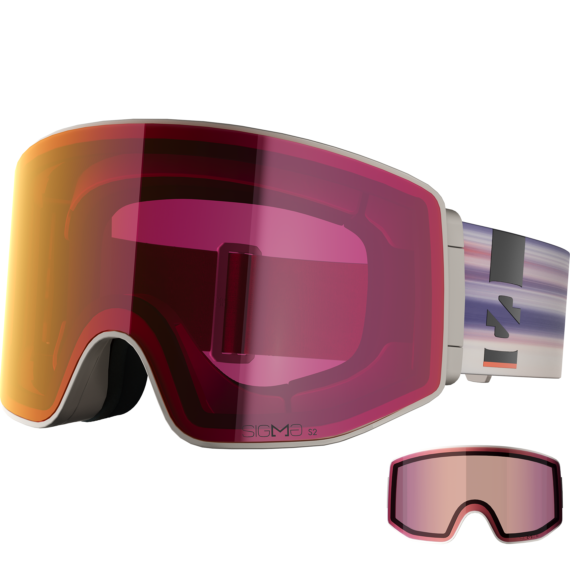 The Salomon Sentry Prime Sigma goggles blend modern street style with state-of-the-art goggle tech for unbeatable on-snow performance. Featuring cylindrical SIGMA™ lenses, these goggles offer amplified contrast and easy lens swaps to optimize vision for any weather. Secure magnetic changing and multi-layer lens coatings ensure optimal clarity and fast adaptation.
